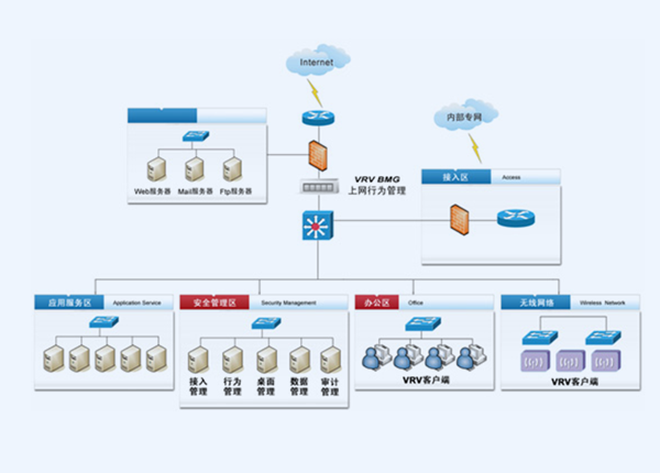 安全準入控制:通過終端安全準入控制管理的建設(shè)與實現(xiàn),將完成對終端用戶的身份認證與授權(quán)管理,實現(xiàn)終端計算機的安全準入控制與管理,即只有在符合既定的安全要求或者安全策略的前提下才能夠進入內(nèi)部網(wǎng)絡(luò),防止非法用戶或非授權(quán)用戶擅自進入內(nèi)部網(wǎng)絡(luò)。